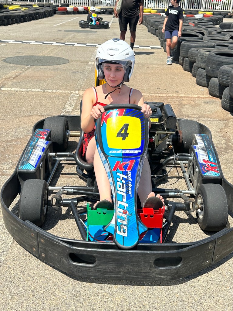 Here is a crazy thought… Ever pictured a person with a disability doing something that is not seen as disability friendly… Well, I went go carting today and might I just say, it was a blast. I kept getting yelled at to slow down but what can I say, I’m a girl for speed.
